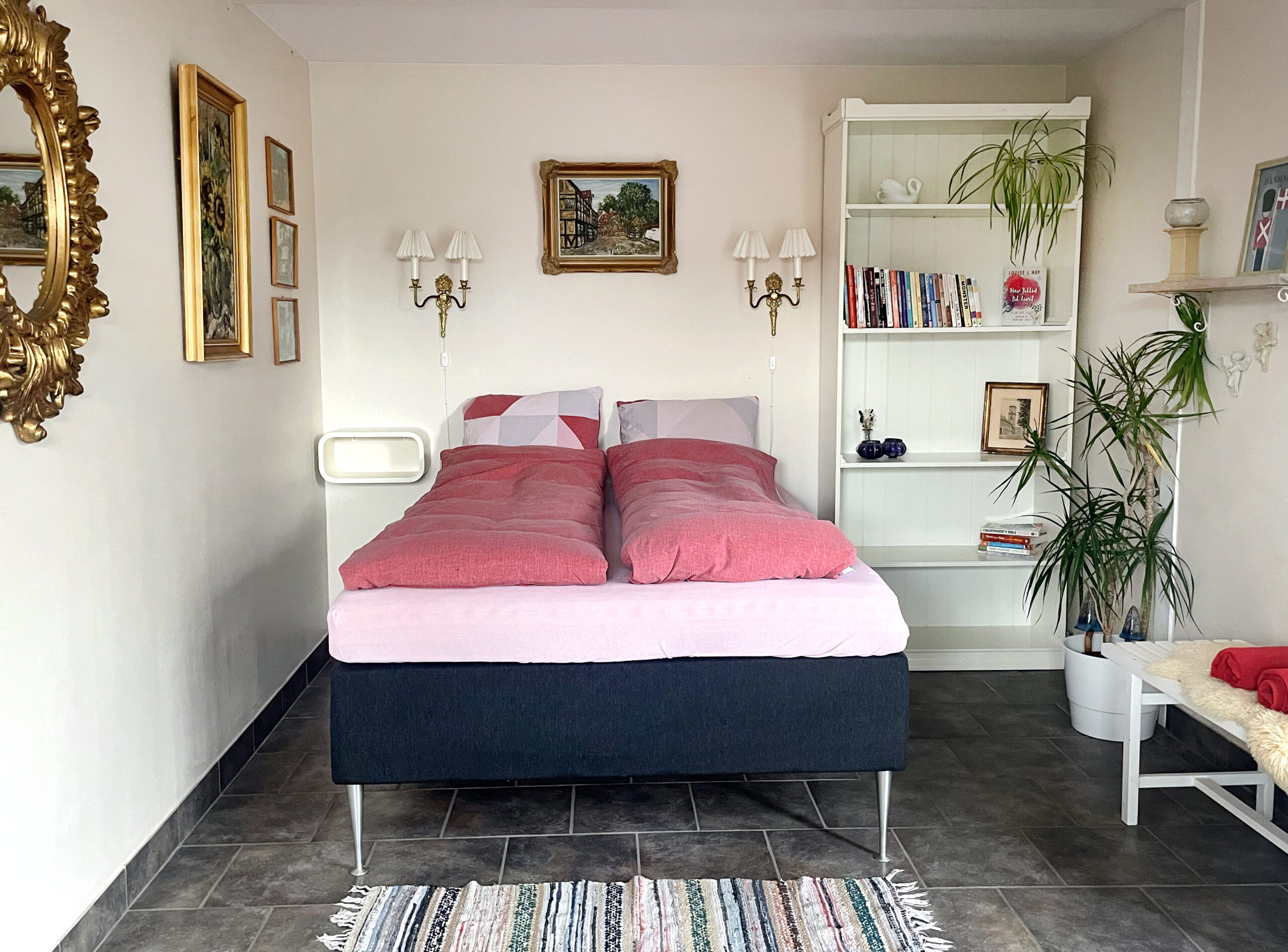 Vælg mellem det røde værelse, det blå værelse eller reservér hele lejligheden.